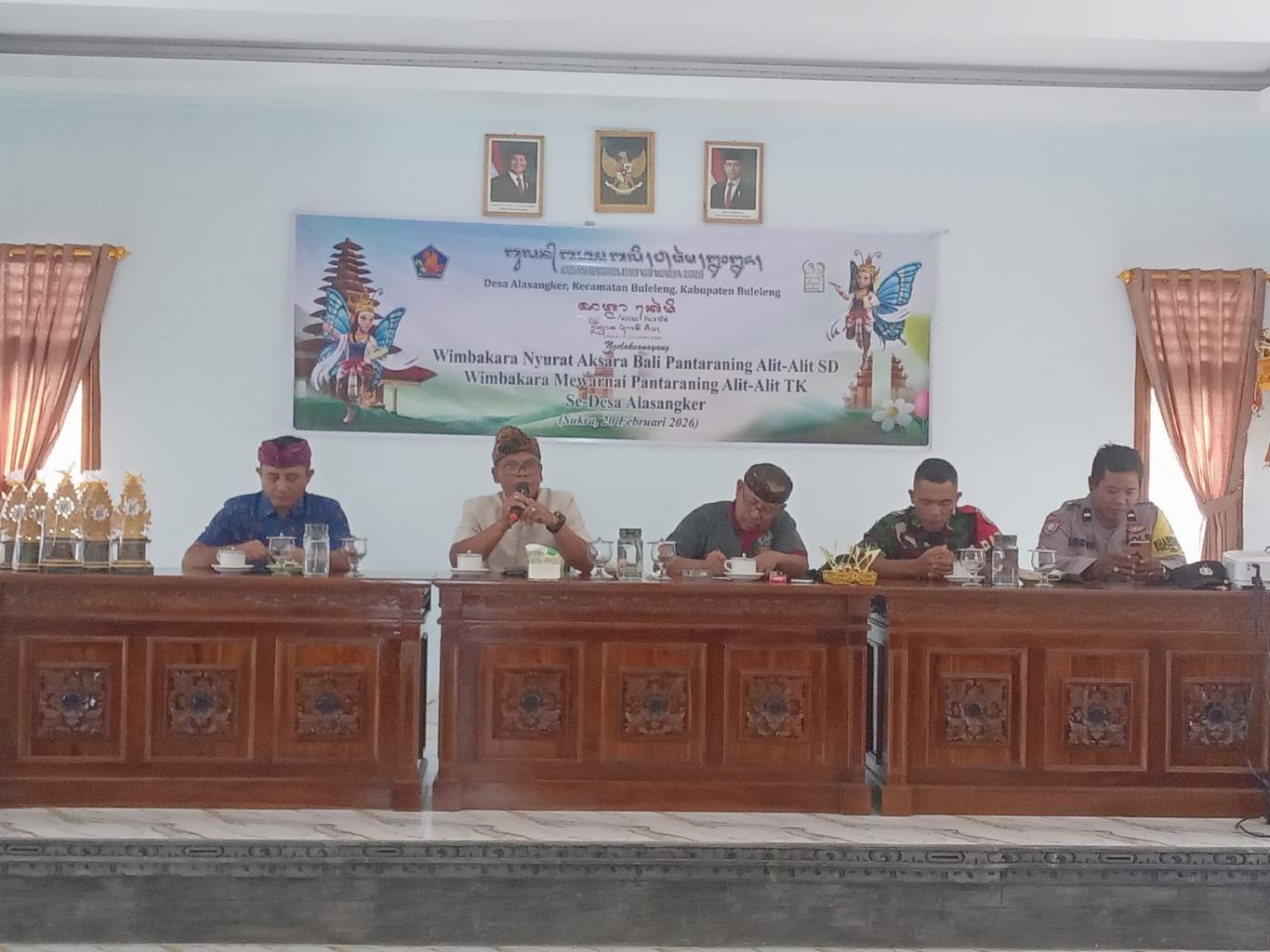 Dalam sambutannya Perbekel Alasangker menyampaiakan, kegiatan ini bertujuan untuk memperkenalkan dan melestarikan aksara Bali serta memupuk kecintaan terhadap budaya Bali sejak usia dini. "Dengan kegiatan seperti ini, kami berharap dapat menciptakan kesadaran lebih dalam mengenai pentingnya bahasa Bali sebagai warisan budaya yang harus dijaga dan dilestarikan," ujarnya.