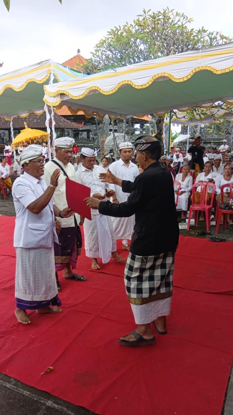Acara pengukuhan ini merupakan bagian dari rangkaian prosesi adat yang bertujuan untuk mengesahkan sekaligus memohon restu secara niskala agar Kelian Desa Adat yang baru dapat menjalankan tugas dan tanggung jawabnya dengan baik selama masa jabatan.